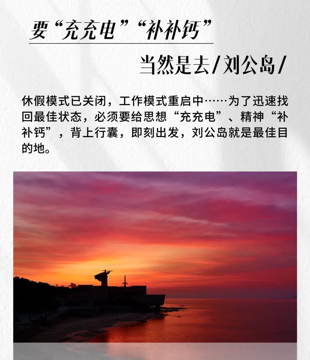 秋风不燥微风正好一转眼,季节换了名字但刘公岛依旧风光如故这个秋天思绪飘扬想开启一场半命题旅行比如要______,当然是去「刘公岛」空白的