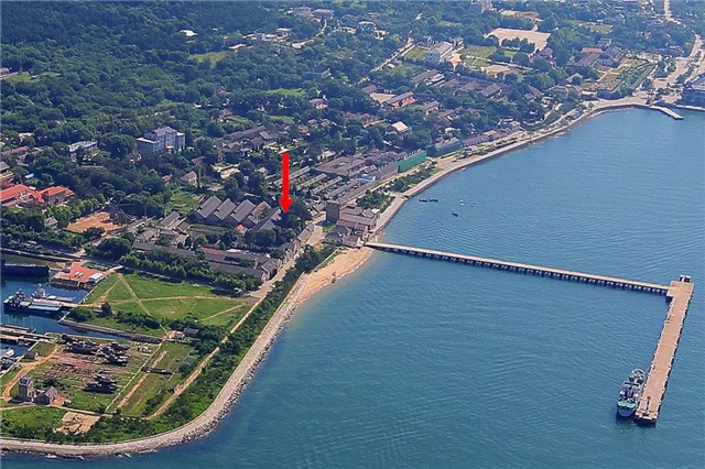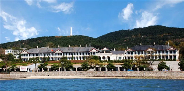 海上远眺驻华舰队司令避暑楼 在刘公岛丁公路东段向阳坡上,矗立着一栋漂亮的二层小别墅,它位居高处,面朝大海。高耸的烟囱、红瓦坡