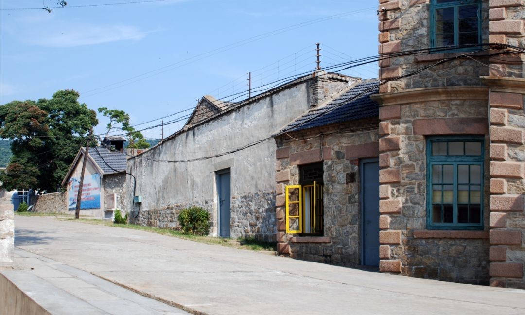 阿英公司仓储房现貌 摄影 鲍振军在刘公岛上海军公所西约100米处,有一栋建于1920年的两面坡欧式建筑:灰瓦顶,毛石墙面,正门带门廊,建筑