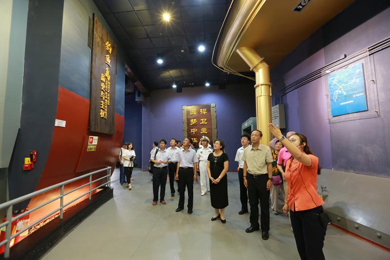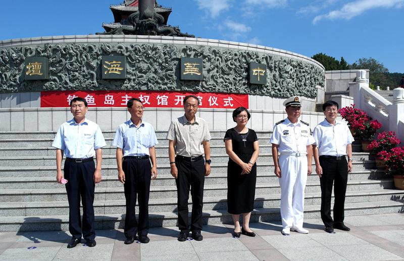 (国家海洋局宣教中心盖广生主任、国际合作司海洋权益处郭海波副处长、威海市人民政府张波副市长、刘公岛管委王京伟主任、威海市海洋与渔业局王焕孟局长等参观钓鱼岛主权馆。)