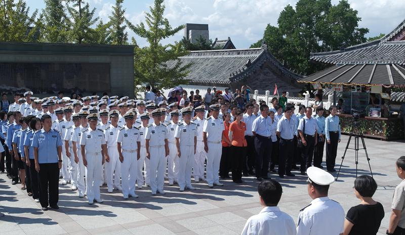 (驻岛官兵、景区职工、驻威学生代表在开馆仪式现场)