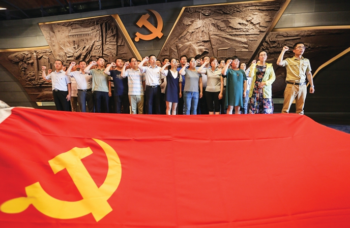 好运角旅游度假区管委会部分机关干部在历史选择展馆党旗下宣誓