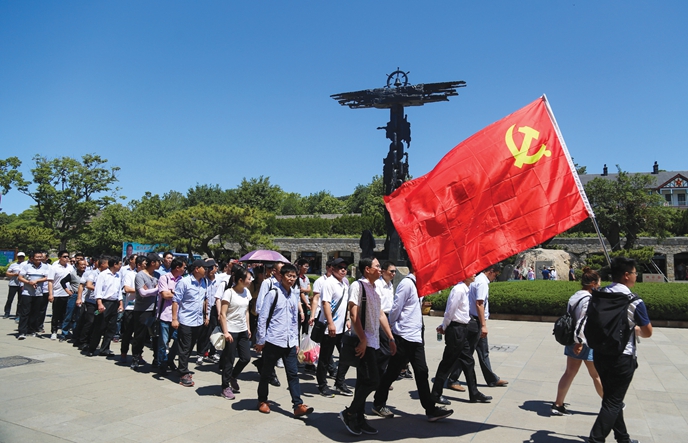 在中国共产党建党97周年之际,胶东(威海)党性教育基地刘公岛教学区迎来参观热潮,我市各机关、企事业单位、基层社区等纷纷组织党员,到党性教育基地刘公岛开展主题党日活动,以铭记历史,不忘国耻,警钟长鸣。