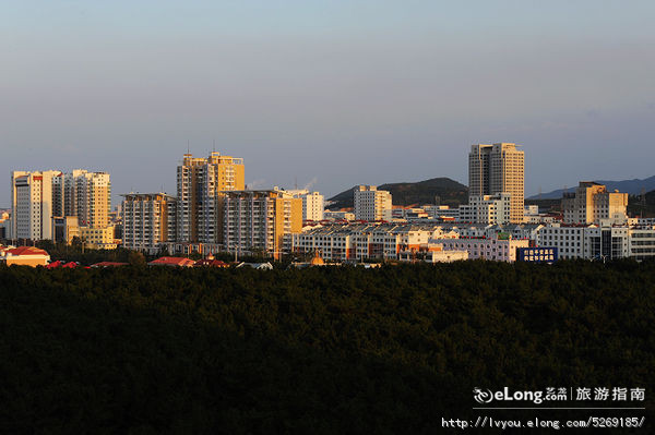 从蓬莱开车到威海已傍晚从酒店窗户看威海市