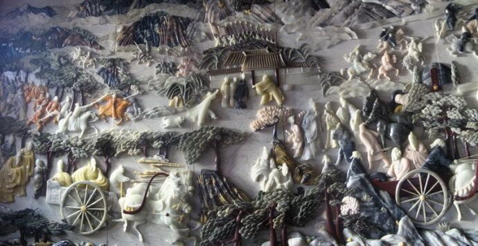 石落村的百姓活下来了,他们感激刘民,更感激这条救命的大鱼,“脂膏割尽骨空存,架骨为梁镇庙门”,乡亲们用剩下的鱼骨在岛上建起了一座祠堂,命名为“鲤堂”(古时称大鱼为鲤)。从此,每年在巨鲸上岸的这一天,人们便来到“鲤堂”祭典。如今,鲤堂已不复存在,但那巨大的鱼骨犹存,博览园将其专柜珍藏,虽历经千年风雨剥蚀,历史的陈迹依稀可辨。